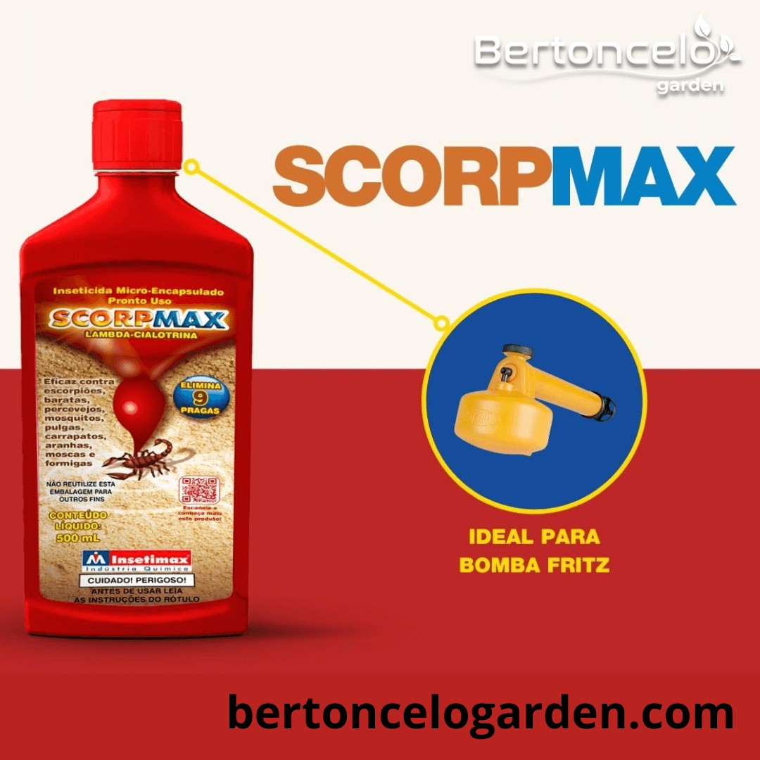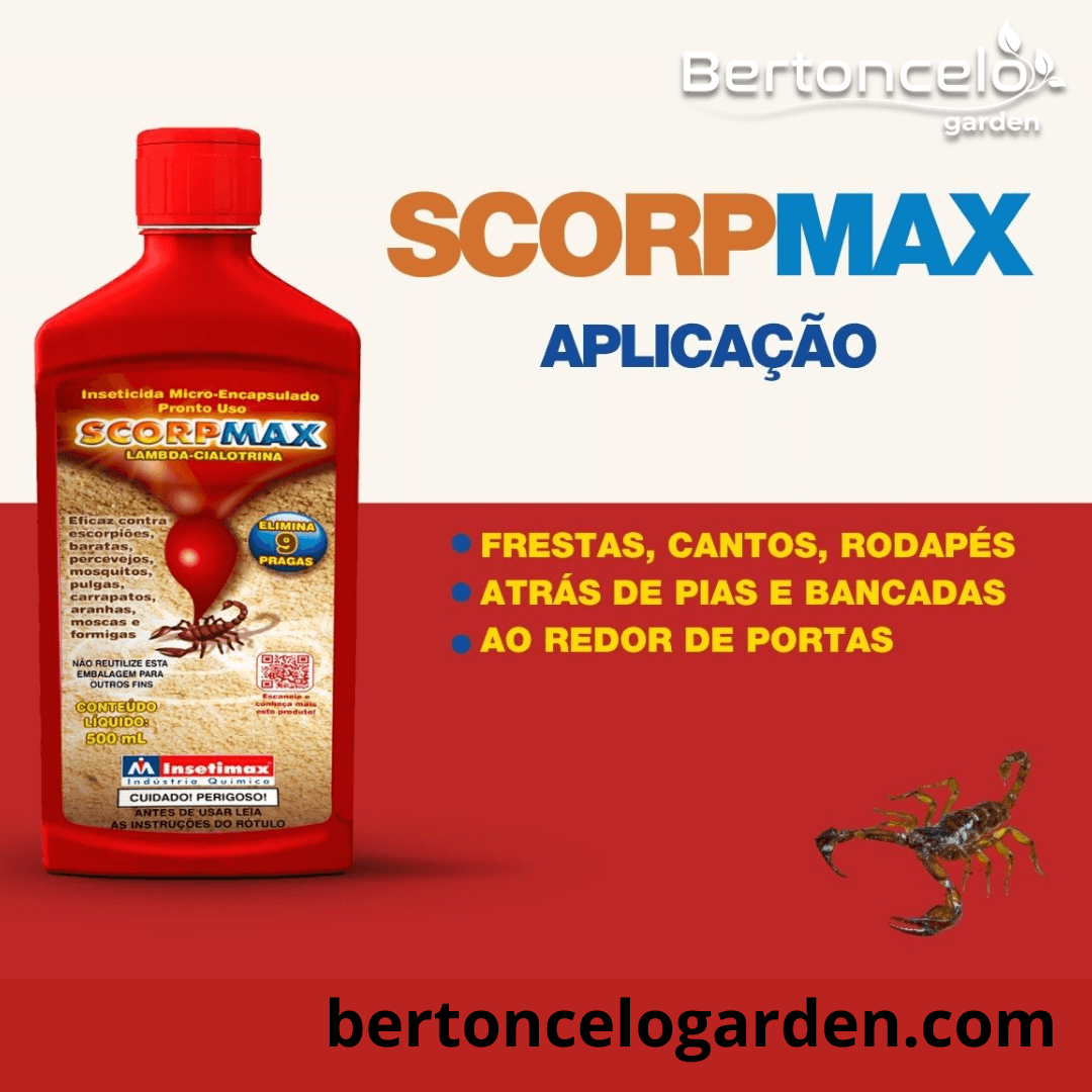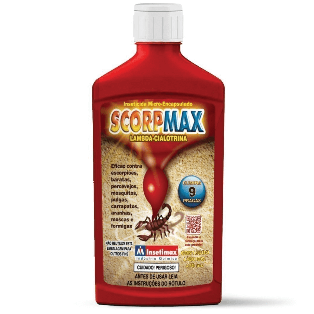 O Inseticida SCORPMAX pode ser usado em áreas internas e externas. Basta agitar bem o frasco, colocar o bico