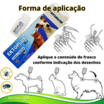 Basta aplicar nos pelos conforme descrição nas fotos, e pronto! Seu cão ou gato estará protegido por semanas, até meses. Nossa fórmula é cuidadosamente desenvolvida para garantir a segurança e o bem-estar do seu companheiro de quatro patas.