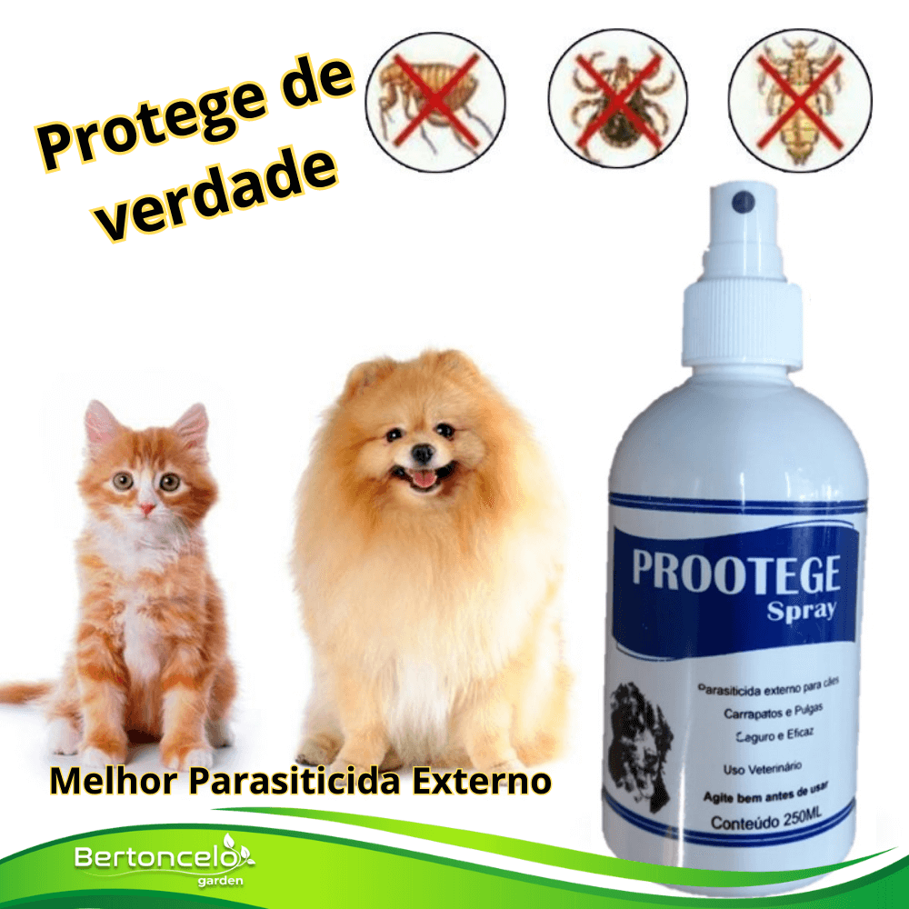 Apresentando o Prootege Spray: a solução definitiva para proteger os pelos de cães e gatos contra pulgas e carrapatos. Com nossa fórmula segura e eficaz, você pode ter a tranquilidade de saber que seu amado animal de estimação está protegido de forma confiável. Nossos amigos peludos merecem o melhor cuidado, e é por isso que desenvolvemos o Prootege Spray. Com apenas algumas borrifadas, você cria uma barreira protetora que afasta esses parasitas indesejadas, mantendo seu animal livre de infestações, desconfortos e doenças transmitidas por esses insetos. O Prootege Spray é fácil de usar e não causa nenhum desconforto ao seu animal de estimação. Basta aplicar suavemente o spray nos pelos, evitando os olhos e a boca, e pronto! Seu cão ou gato estará protegido por semanas.Além de sua ação repelente, o Prootege Spray também possui propriedades hidratantes e condicionantes, deixando os pelos do seu animal de estimação macios, macios e cheirosos. Nossa fórmula é cuidadosamente desenvolvida para garantir a segurança e o bem-estar do seu companheiro de quatro patas. Não comprometa a saúde do seu animal de estimação com produtos duvidosos. Escolha o Prootege Spray e proporcione a proteção que seu cão ou gato merece. Garanta agora mesmo o seu frasco de Prootege Spray e diversão de momentos felizes e livres de parasitas com seu amado animal de estimação! Embalagem com 250ml