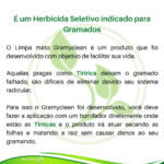 Produto pronto uso seletivo, podendo ser aplicado sobre gramado. Altamente eficaz no controle das ervas daninhas Tiririca ( Cyperus rotundus ), Picão Preto ( Bidens pilosa) e Picão Branco (Galinsoga parviflora)/