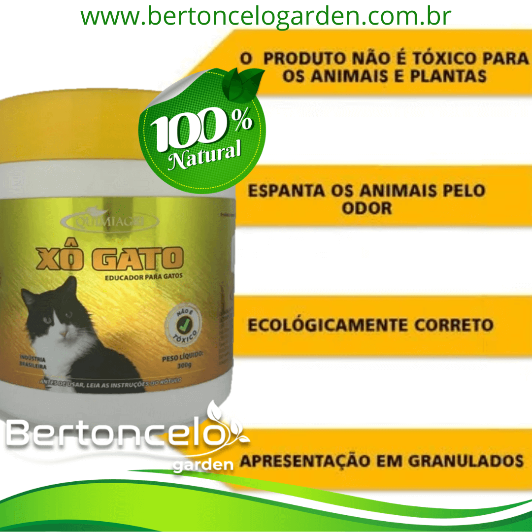 O Repelente Granulado Xô Gato da Quimiagri é um educador atóxico e natural, ideal para afastar felinos de jardins, canteiros e lixeiras através de um odor intenso.